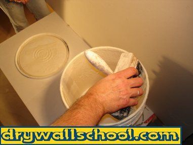 I'm using a chunk of sheetrock here so my rows are only about 5 feet long. Even if you are doing a long wall try to only do about as much as I'm doing.(4 or 5 foot sections from ceiling to floor)
